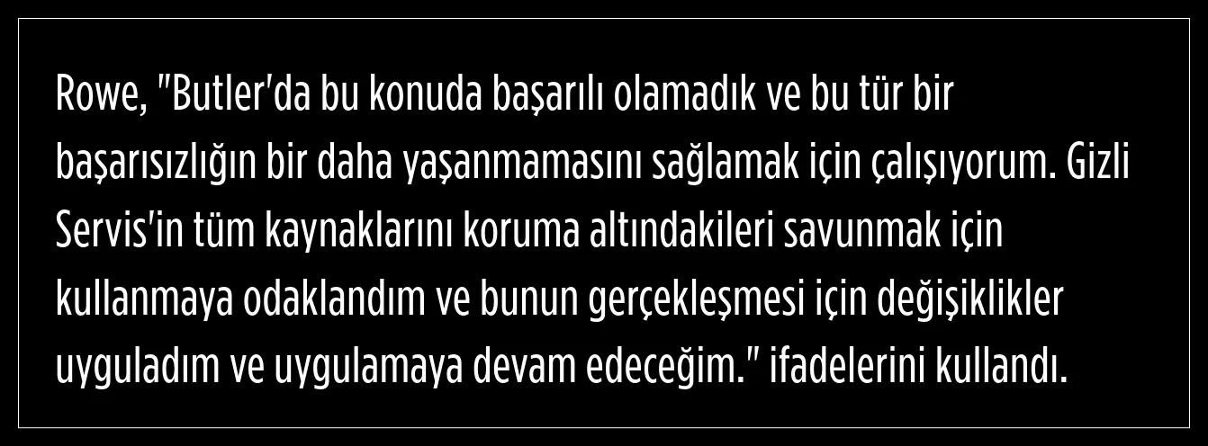 Rowe, gazetecilere yaptığı açıklamada, Trump'ın 13 Temmuz'da Pensilvanya'daki Butler bölgesinde mitingde konuşma yaptığı sırada gerçekleşen silahlı saldırıyla ilgili olarak, "Bu bir görev başarısızlığıydı. Teşkilatımızın birincil görevi, korumakla yükümlü olduklarımızın güvenliğini sağlamaktır." dedi.