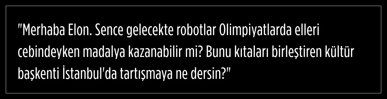 Milyarder girişimci Elon Musk, robotların hedefi daima 12'den vuracağını belirterek Yusuf Dikeç'e yanıt verdi. Dikeç'in İstanbul davetini de cevaplayan Musk, "Dünyadaki en güzel kentlerden biri. İstanbul'u ziyaret edeceğim zamanı dört gözle bekliyorum." ifadelerini kullandı.