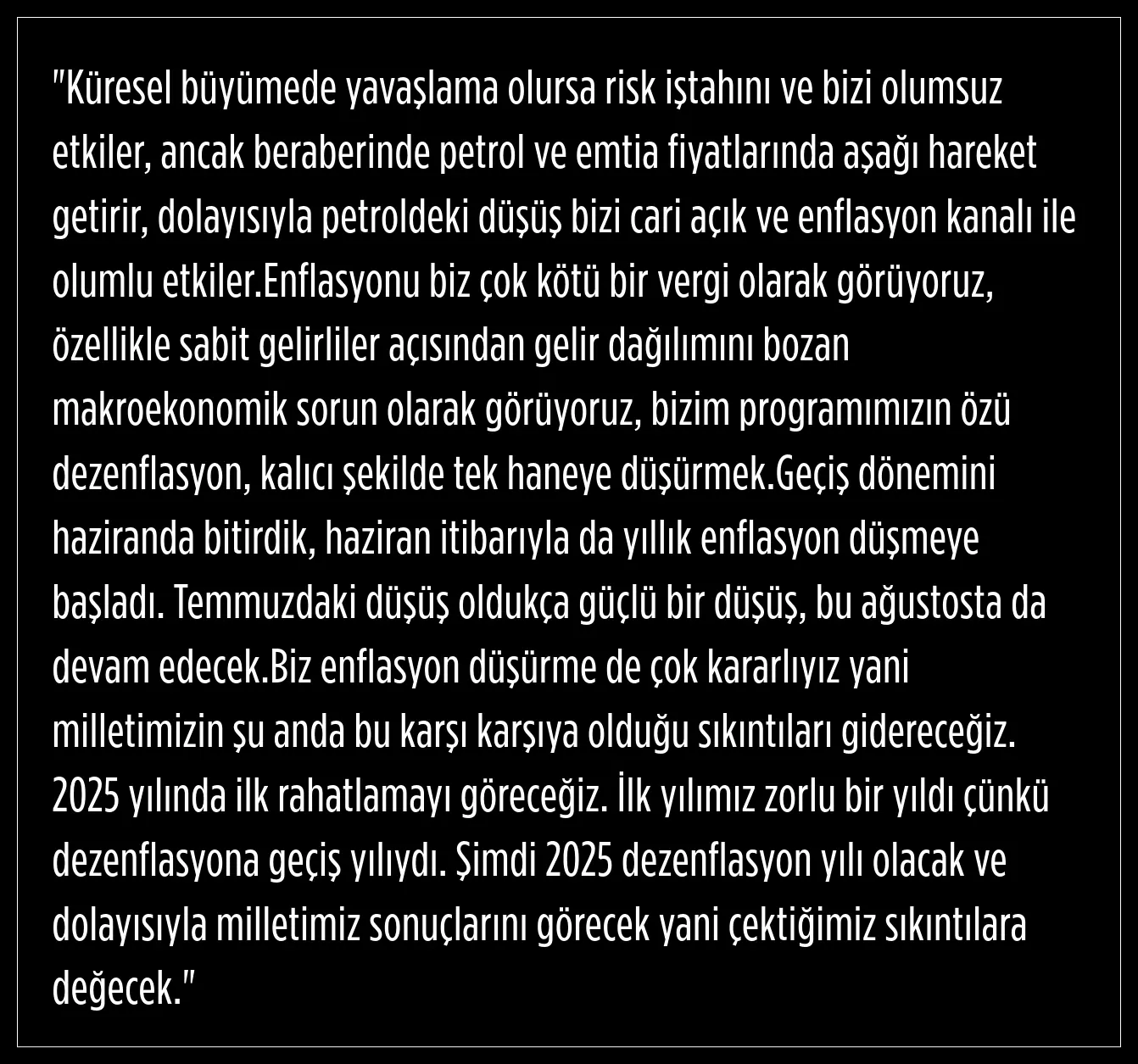 Fed'in hızlı şekilde faiz indireceği beklentisinin oluştuğunu, piyasaların buna tepki verdiğini kaydeden Şimşek, "Küresel finansal şartlarda bir gevşeme beklentisi oluştu. Bu beklenti, bizim gibi gelişmekte olan ülkelerin lehine olacak. Zira bu durum, fon akışını hızlandıracak." dedi.