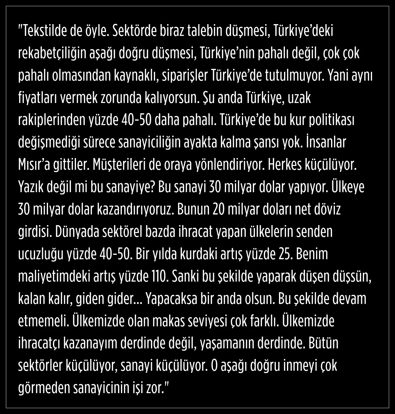 Hem kâr hem de ciro bakımından en kötü sektörlerden birinin giyim olduğunu kaydeden TİM Başkanı Gültepe, şunları söyledi: