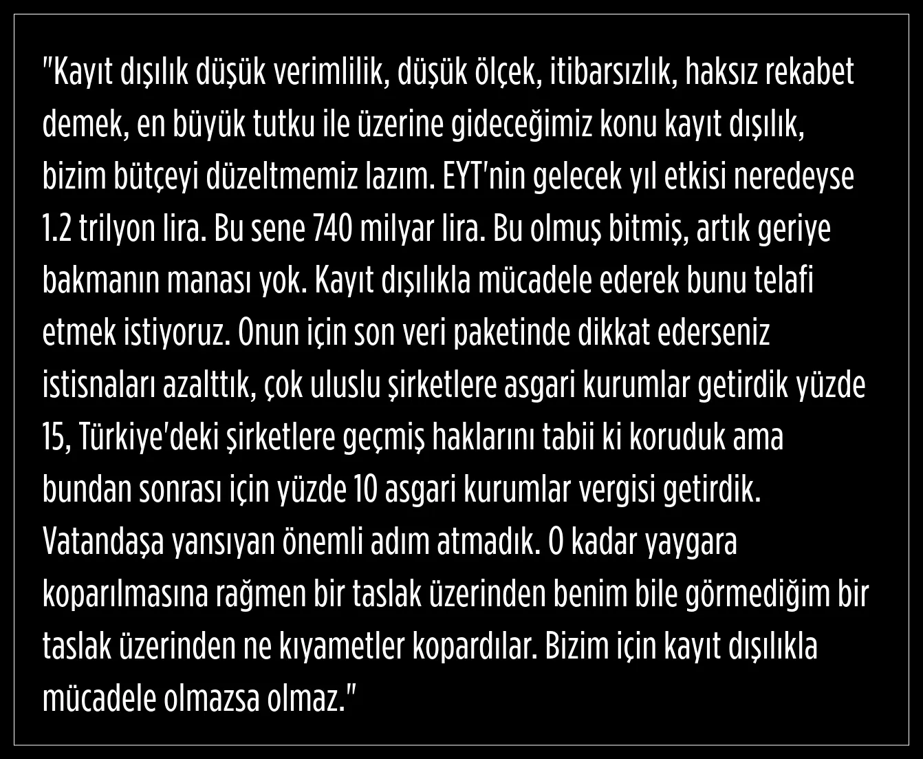 Hazine ve Maliye Bakanı Mehmet Şimşek, kayıt dışılık ile vergi paketi konusunda şunları söyledi: