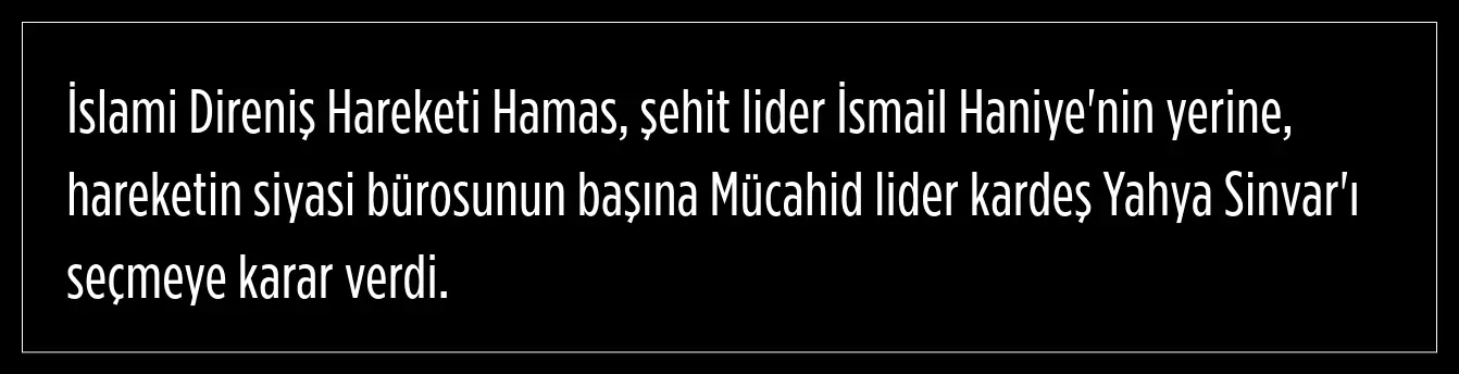 Hamas'ın yeni lideri olarak İsmail Heniyye'nin yerine Yahya Sinvar, getirildi.