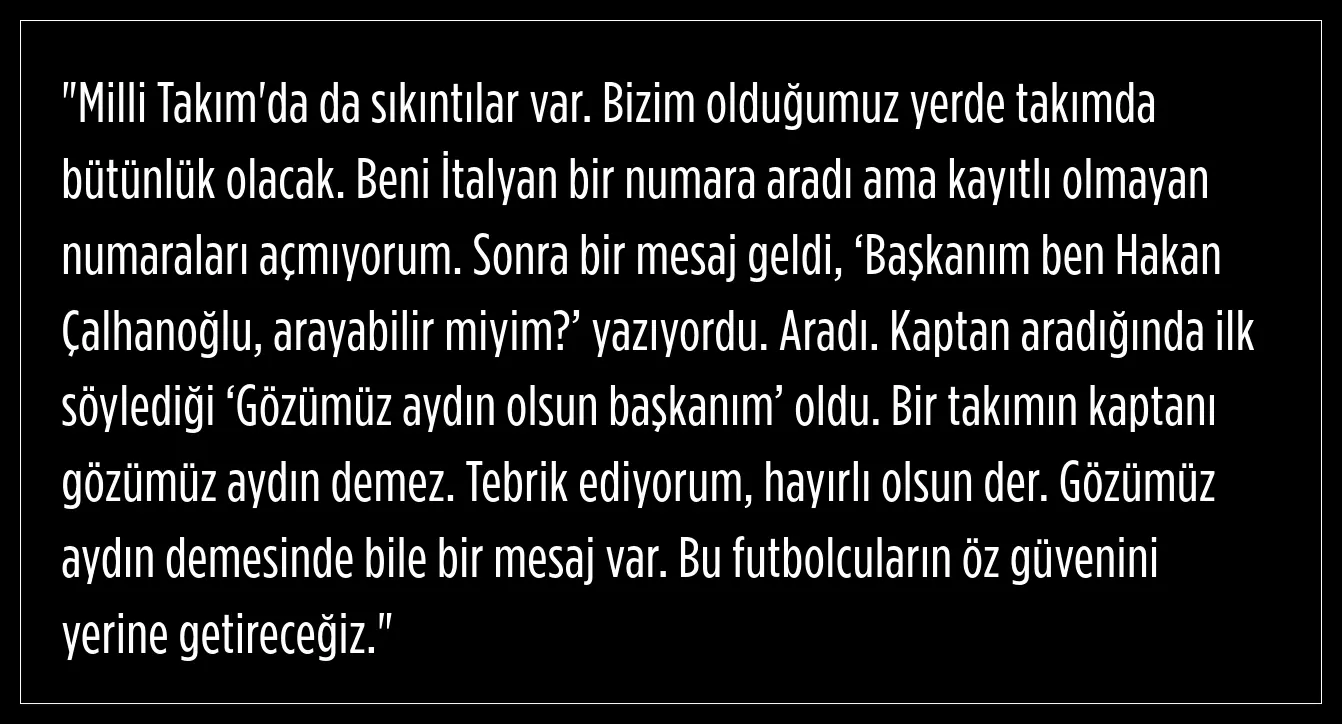 TFF Başkanı Hacıosmanoğlu; Hakan Çalhanoğlu ile yaptığı konuşmadan korsan yayına, hakem maaşlarından Montella'ya kadar çeşitli konularda açıklamalar yaptı.