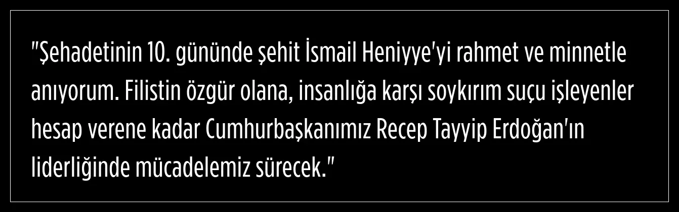 Altun, ilk paylaşımında, Tahran'da suikast sonucu yaşamını yitiren Hamas Siyasi Büro Başkanı İsmail Heniyye'yi rahmet ve minnetle andı.