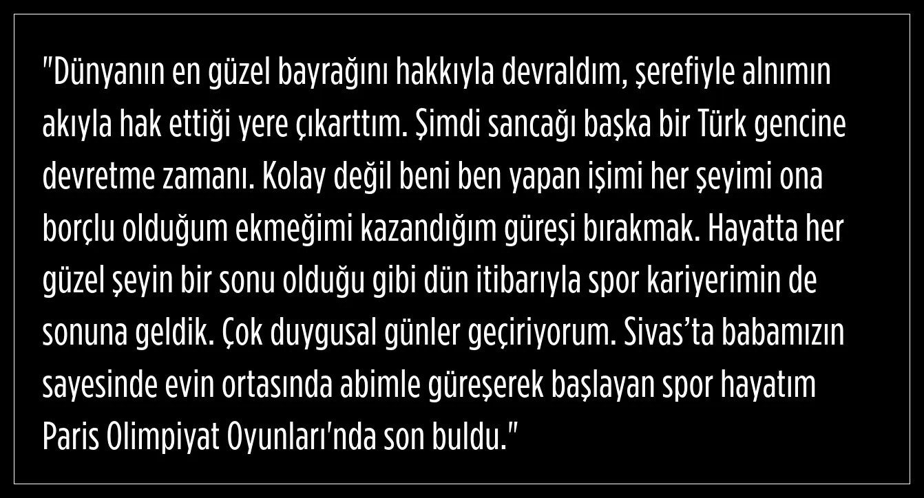 Türk güreşinin efsane isimlerinden Taha Akgül, Paris 2024 Olimpiyatları'nda kazandığı bronz madalyanın ardından güreş kariyerine son verme kararı aldı. Sosyal medya hesaplarından paylaştığı duygusal mesajında, sporseverlere veda etti.