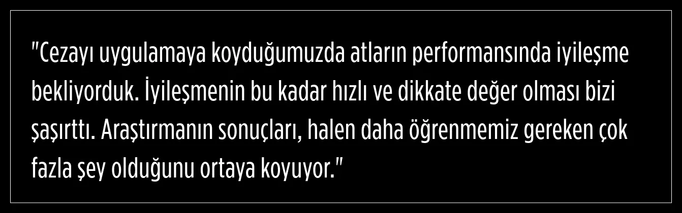 Araştırmacılar, bu deneyle atların "yanlış yapmanın bir bedeli" olduğunu fark ettiklerini ve bu nedenle kurallara göre hareket etmeyi öğrendiklerini tespit etti.