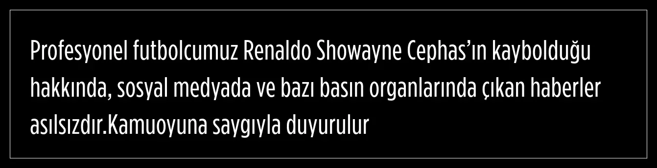 Ankaragücü, Renaldo Showayne Cephas’ın kaybolduğu hakkında sosyal medyada ve bazı basın organlarında çıkan haberlerin asılsız olduğunu açıkladı.