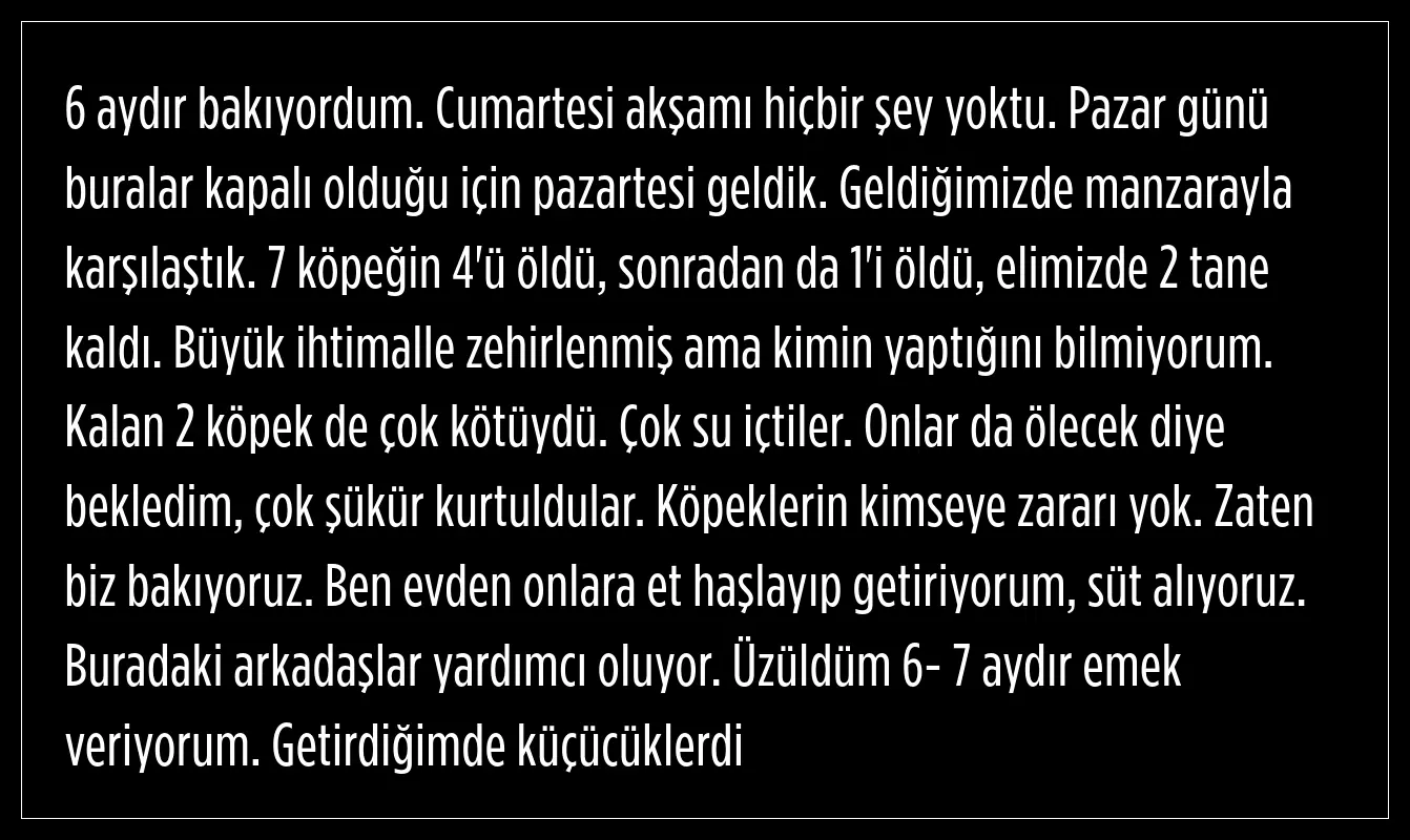 Ünal, köpeklerin zehirlendiğini düşündüğünü ifade etti.