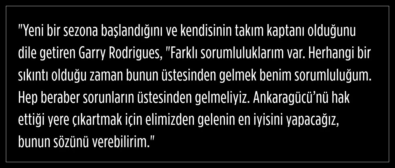 MKE Ankaragücü'nün kaptanı Garry Rodrigues ise takımın hedefleri hakkında şu ifadeleri kullandı: