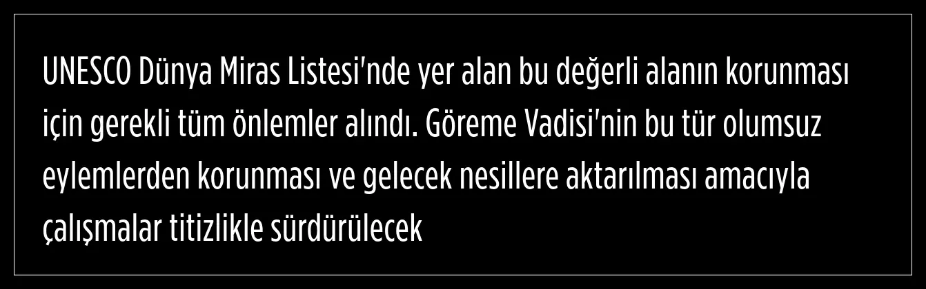 Kapadokya Alan Başkanlığı, olayla ilgili yazılı bir açıklama yaptı. Açıklamada, reklam çekimi için kullanılan kimyasal içerikli maddelerin kaya oyma yapıya zarar verdiği tespit edilen firmaya yaklaşık 2 milyon TL ceza kesildiği ve hukuki işlemlerin başlatıldığı belirtildi. Ayrıca, alanın Kapadokya Alan Başkanlığı ve Nevşehir Restorasyon ve Konservasyon Bölge Laboratuvarı Müdürlüğü ekiplerince temizlendiği bildirildi.