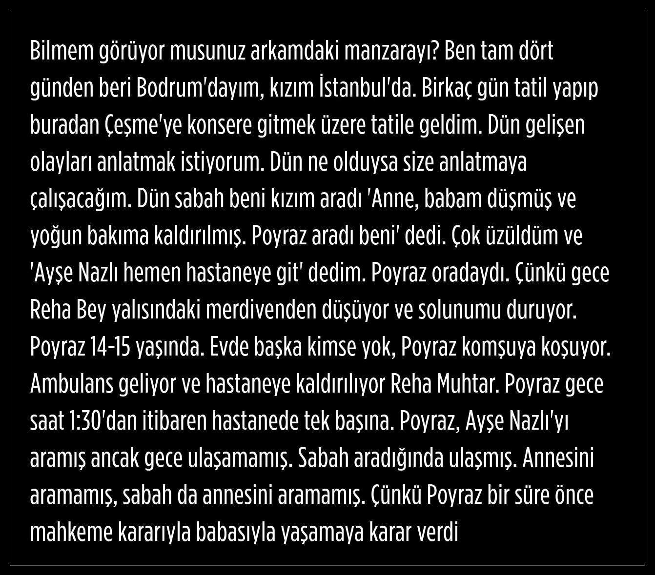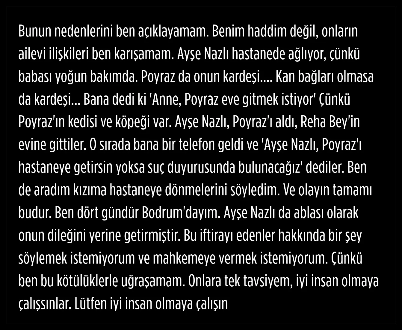 "Poyraz bir süre önce mahkeme kararıyla babasıyla yaşamaya karar verdi"