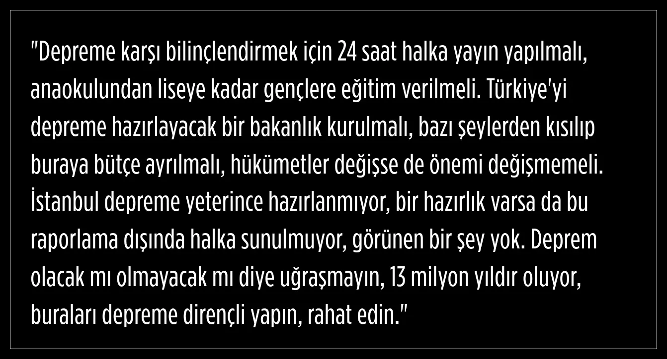 Deprem bakanlığı kurulması gerektiğini belirten İstanbul Teknik Üniversitesi Öğretim Üyesi Görür, şunları söyledi: