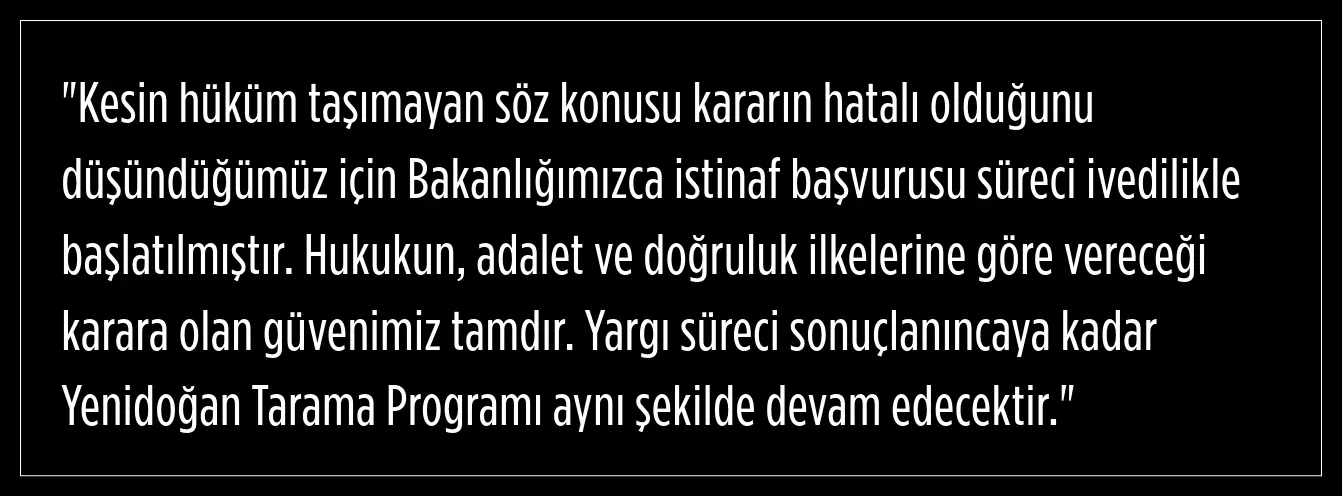 Sağlık Bakanlığı, Kars aile mahkemesinin "Yenidoğan Tarama Programı" kapsamında topuk kanı alınmasıyla ilgili kararına karşı istinaf başvuru sürecini başlattığını duyurdu.
