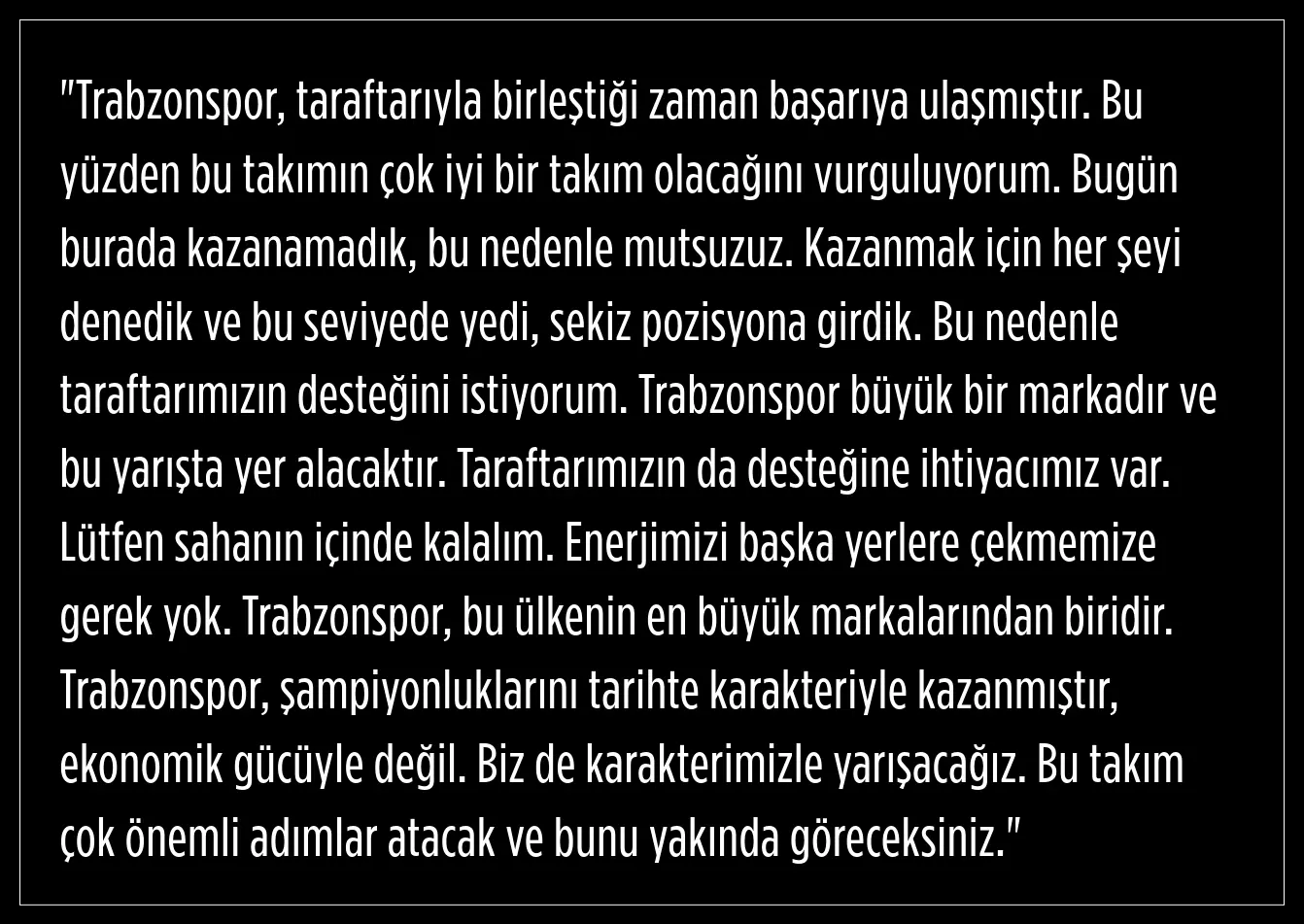 Yeni bir takım oluşturduklarını ve hızlıca mesafe kat etmeye çalıştıklarını belirten Abdullah Avcı, konuşmasına şöyle devam etti: