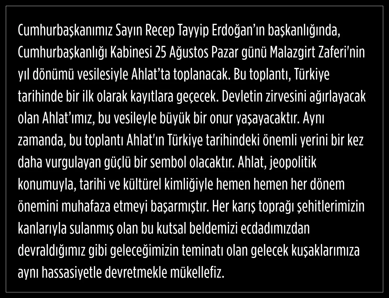 "Ahlat'taki kabine toplantısı Türkiye tarihinde bir ilk olacak"