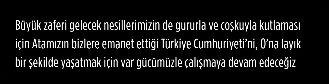 Türkiye Cumhuriyeti’nin Kurucusu Ulu Önder Mustafa Kemal Atatürk’ün başkumandanlığında zaferle sonuçlanan Büyük Taarruz'un kutlandığı “30 Ağustos Zafer Bayramı” yaklaşıyor.