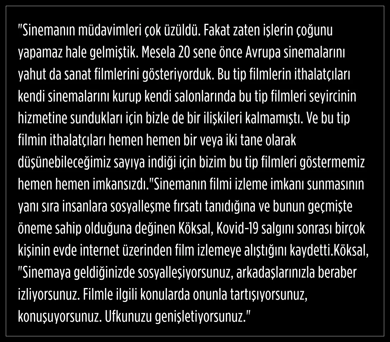 "Sinemanın müdavimleri çok üzüldü"