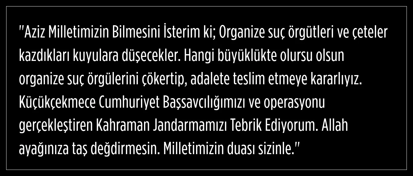 Küçükçekmece Cumhuriyet Başsavcılığı ve Jandarma Genel Komutanlığı KOM Daire Başkanlığı koordinesinde; İstanbul İl Jandarma Komutanlığı KOM Şube Müdürlüğünce yapılan çalışmalar sonucu; İstanbul’da düzenlenen operasyonda organize suç örgütü üyesi şüphelilerin;