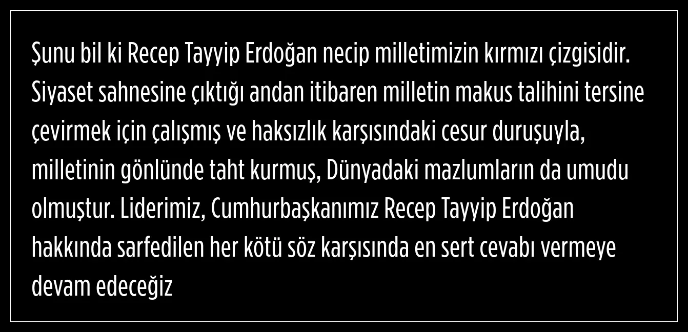 "Recep Tayyip Erdoğan necip milletimizin kırmızı çizgisidir"