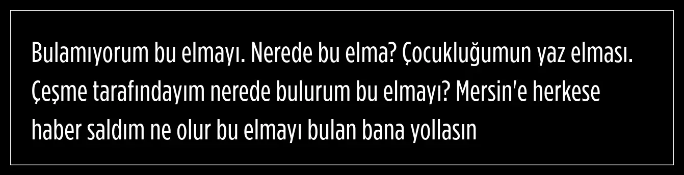 Takipçilerinden yardım isteyen Bayat, çocukluğunun yaz elmasını bulamadığını ifade ederek, "bulan bana yollasın" ifadelerini kullandı.