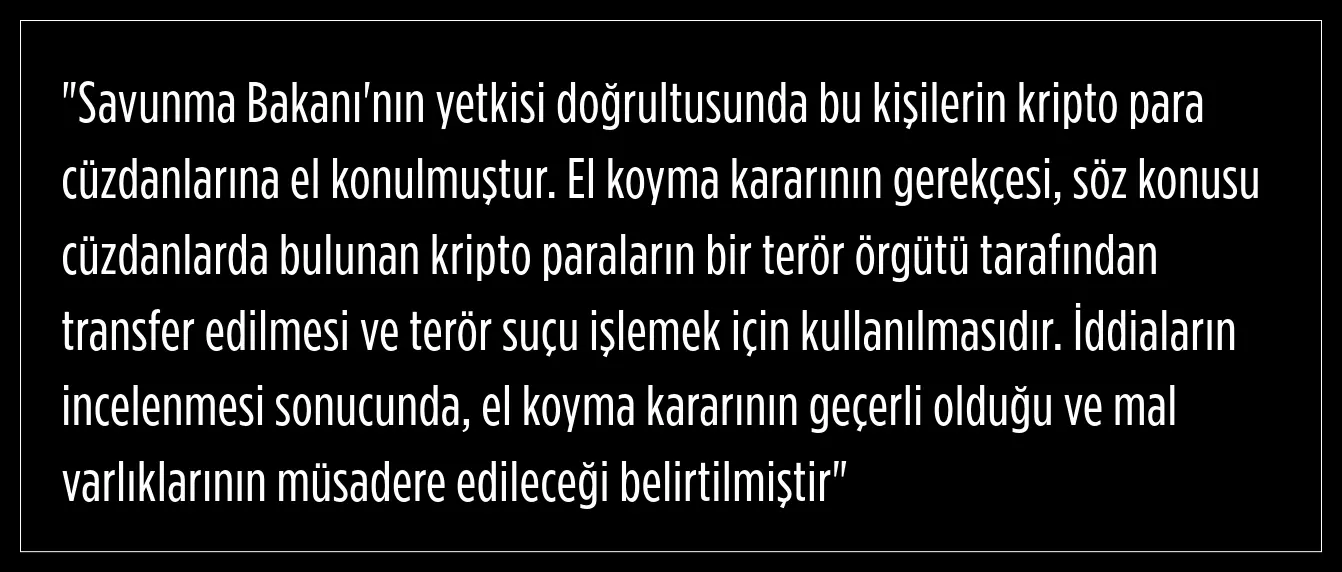 El koyma kararına gerekçe olarak, söz konusu kişilerin kripto paraları terörizm amacıyla kullanma ihtimalleri ortaya konuyor.
