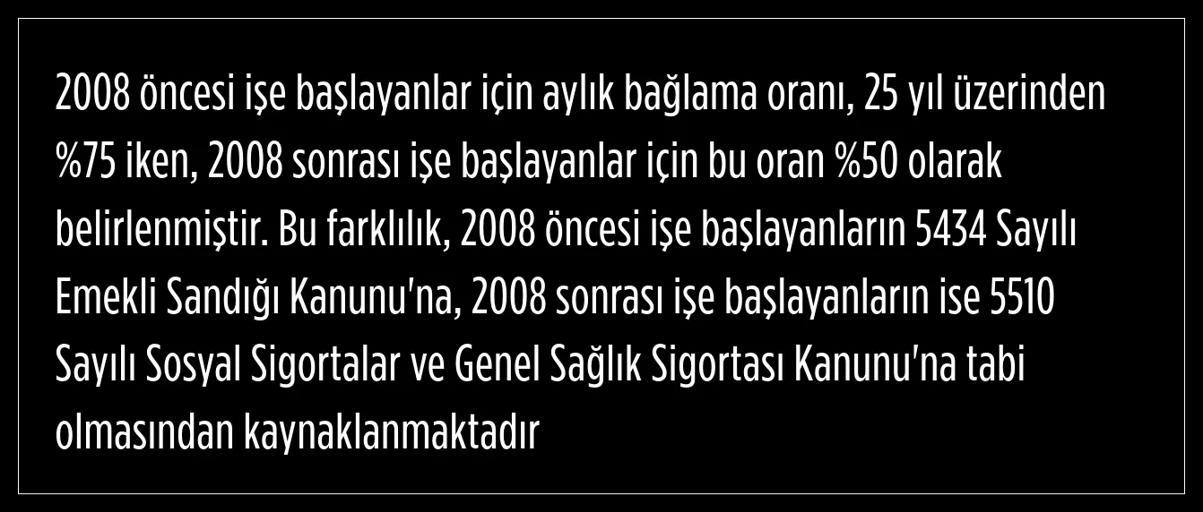 2008 öncesi ve sonrası işe başlayan sağlık çalışanları için farklı emeklilik maaşı bağlama oranlarının uygulandığını ifade eden Genel Sağlık- İş, şunları söyledi;