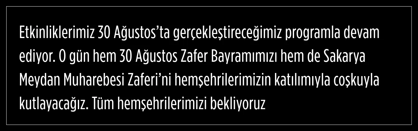 81 ilde çeşitli etkinlere imza atılacak, bu kutlu zafer her yıl olduğu gibi yine büyük bir coşku ve gururla kutlanacak.