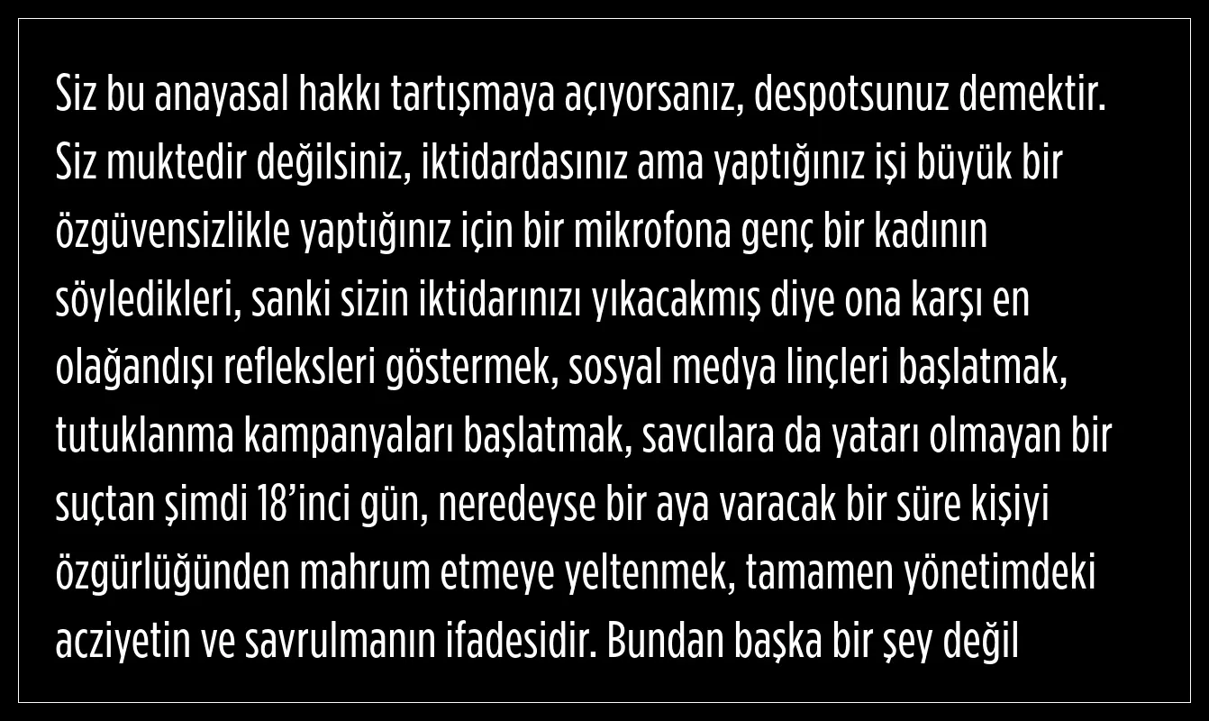 "Kişiyi özgürlüğünden mahrum etmeye yeltenmek, tamamen yönetimdeki acziyetin ve savrulmanın ifadesidir"