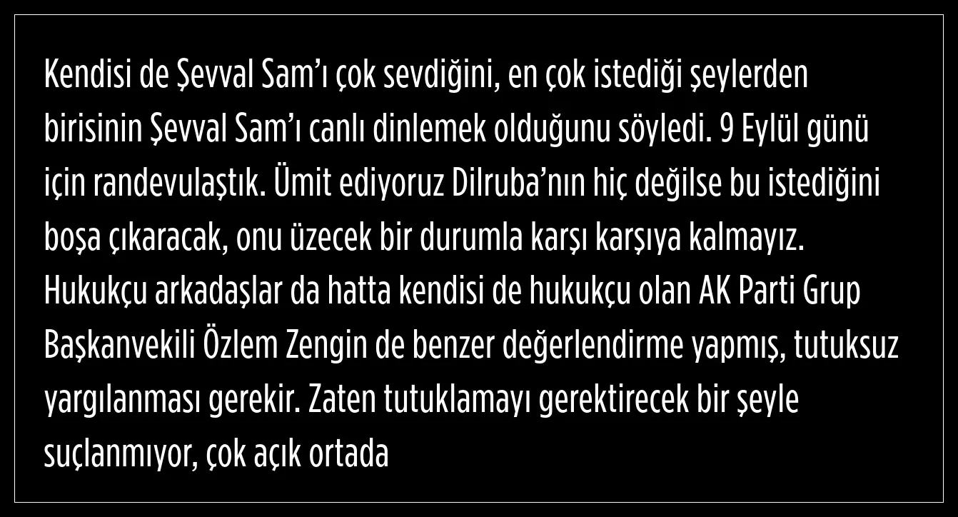 Dilruba ile görüştüğünü söyleyen Özel, özgürlüğüne kavuşması sonrasında verdiği röportajda ne kastettiğini ve kastetmediğini, gerçek düşüncelerini paylaşacağını ifade etti.