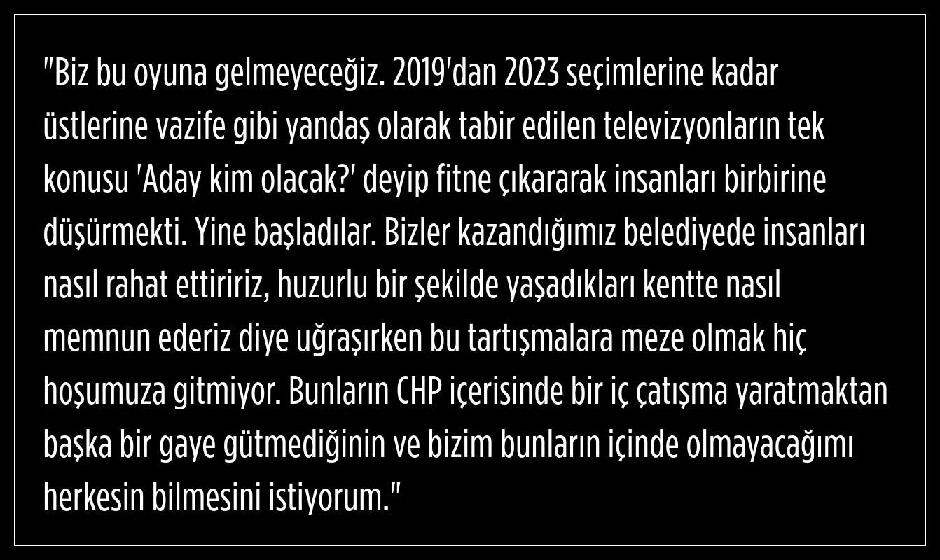 Tüzük Kurultayı'na atıfta bulunan Yavaş, "1885'te söylenmiş bir söz var; 'Fazla güç insanı bozar.' Bugün kuvvetler ayrılığı prensibinden bahsetmek neredeyse imkansız hale geldi. Parlamento işlevsizleştirildi ve kararlar talimatlarla alınıyor. Tüzük Kurultayı'nda özellikle parlamenter sisteme geçiş konusunda güçlü söylemlere ihtiyaç duyduğumuzu düşünüyorum. Bu, bizim için olmazsa olmazdır. Şahsen, bu kadar güçlü bir yetkiyi istemem. Bu kadar güce sahip olmak kimsenin hakkı ve haddi değildir" şeklinde konuştu.