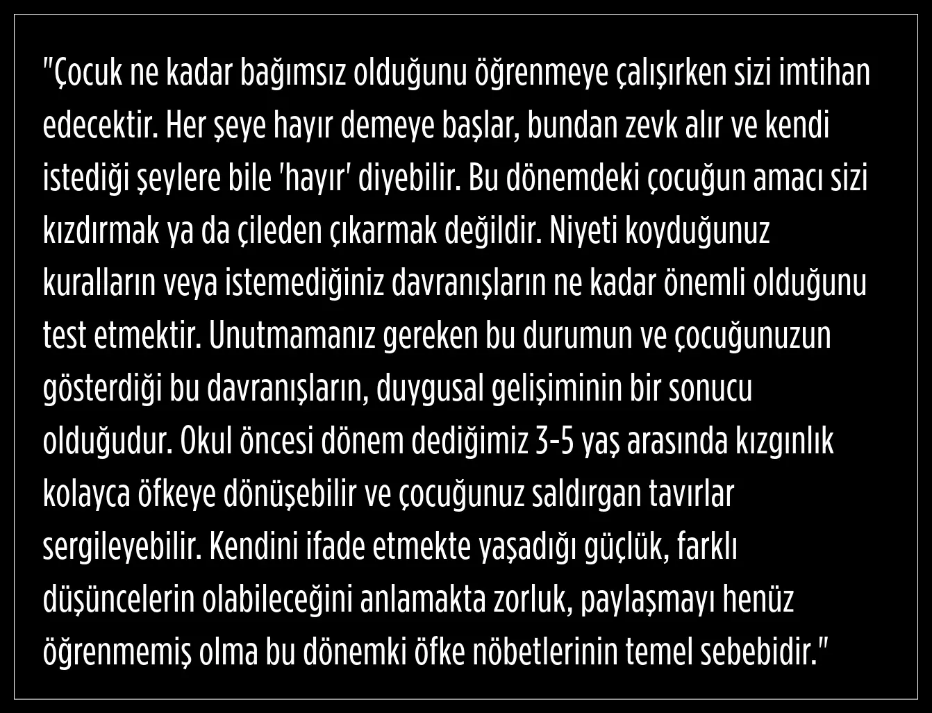 Bağımsızlık arayışından dolayı çocukların kolaylıkla öfke nöbetine sürüklenebileceğinden söz eden Yıldız, şunları söyledi: