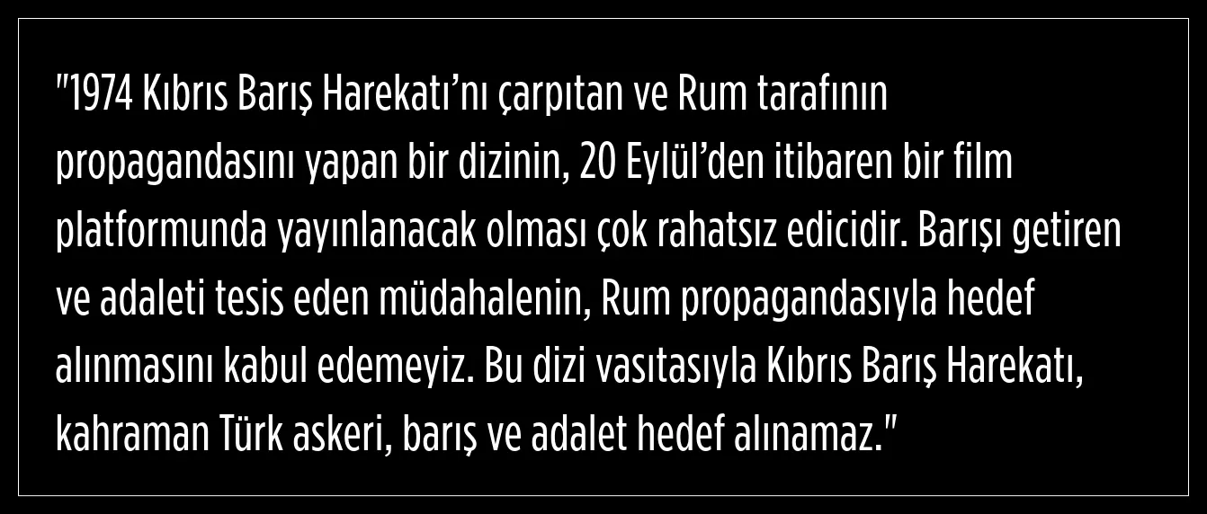 Kıbrıs Barış Harekatı'nda Türk askerini zalimmiş gibi gösteren Netflix'in yeni dizisi 'Famagusta'ya tepkiler, Yunanlılar tarafından çarpıtılıyor.
