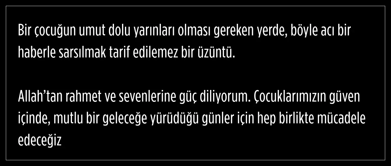 "Böyle acı bir haberle sarsılmak tarif edilemez bir üzüntü"