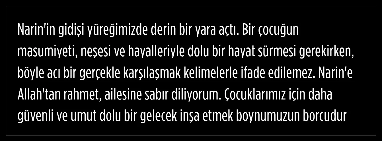 "Narin'in gidişi yüreğimizde derin bir yara açtı"