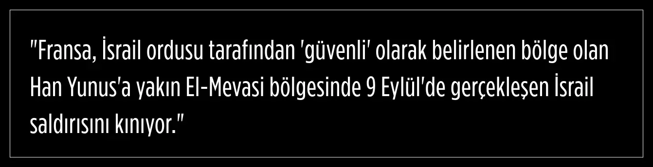 Nitekim, bir gazetecinin "Han Yunus'taki saldırı hakkında bir yorumunuz var mı?" sorusu üzerine Fransa Dışişleri Bakanlığı yazılı açıklama yaptı.
