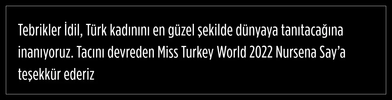 Miss Turkey 2024'ün kazananı İdil Bilgen, Miss World'de Türkiye'yi temsil edecek.