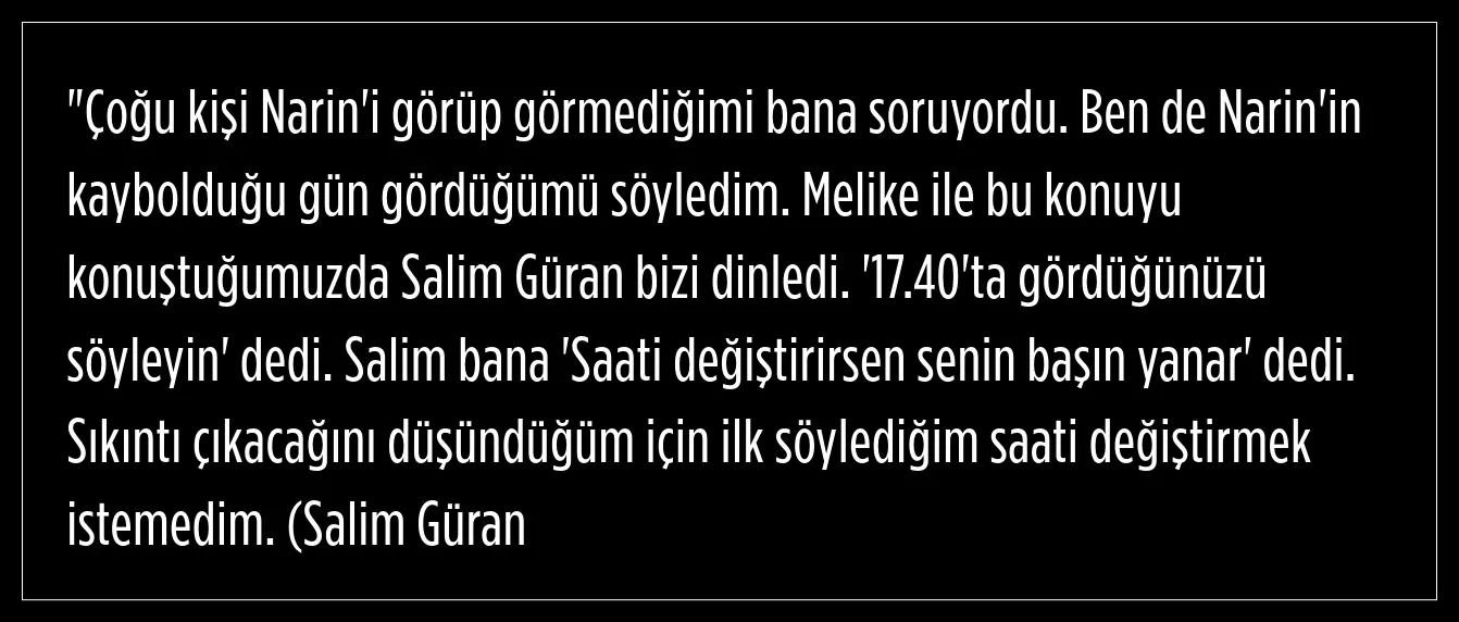 "Salim Güran bizi dinledi, '(Narin'i) 17.40'ta gördüğünüzü söyleyin' dedi"