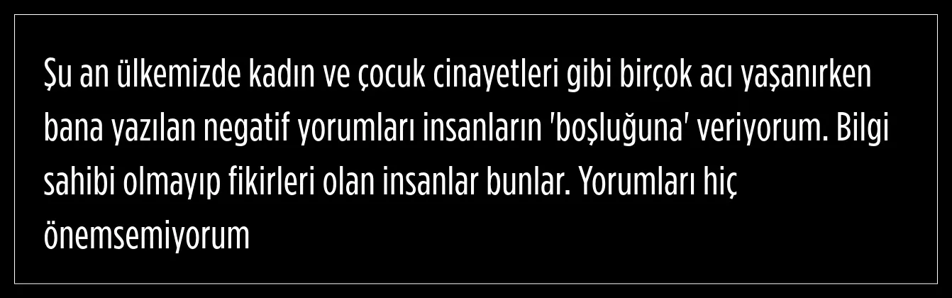"Negatif yorumları insanların boşluğuna veriyorum"