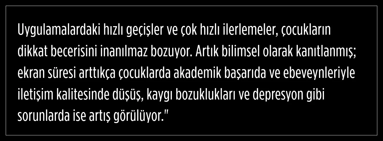 "Çocukların dikkat becerisini inanılmaz bozuyor."