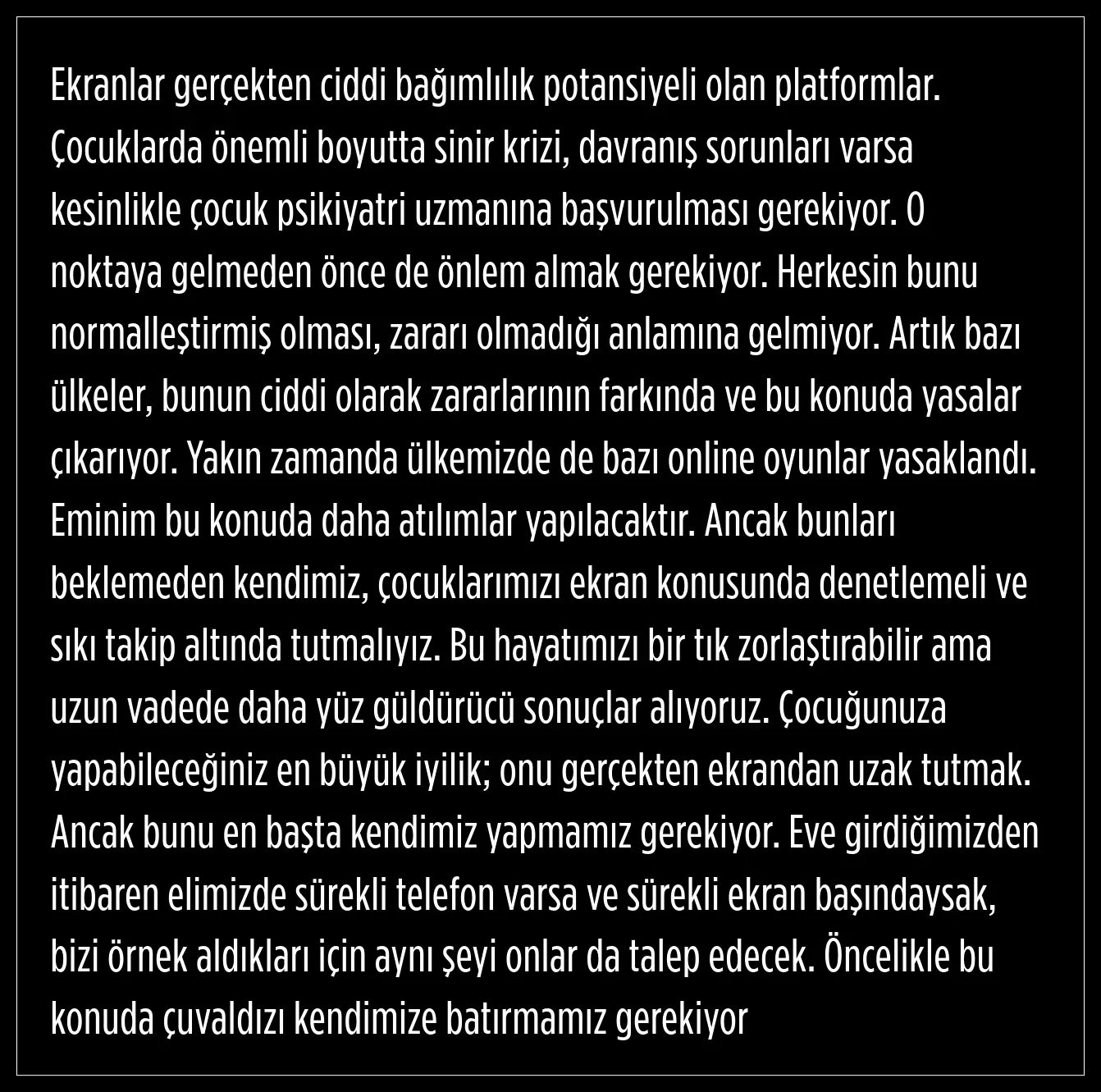 "Çocuklarımızı ekran konusunda denetlemeli ve sıkı takip altında tutmalıyız"