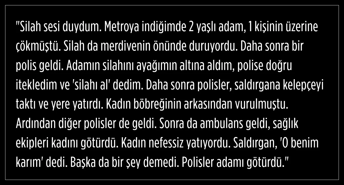 Ankara Sıhhiye'den kan donduran bir cinayet haberi geldi. Bir şahıs, boşanma aşamasındaki eşini metro istasyonunda öldürdü.