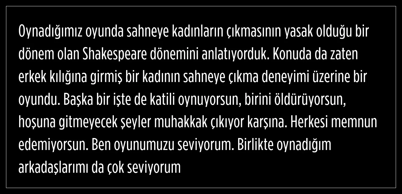 Oyunculuk performansıyla büyük beğeni toplayan, canlandırdığı rolleriyle gündemden düşmeyen oyuncu, 'Aşık Shakespeare' adlı tiyatro oyununda rol alıyor.