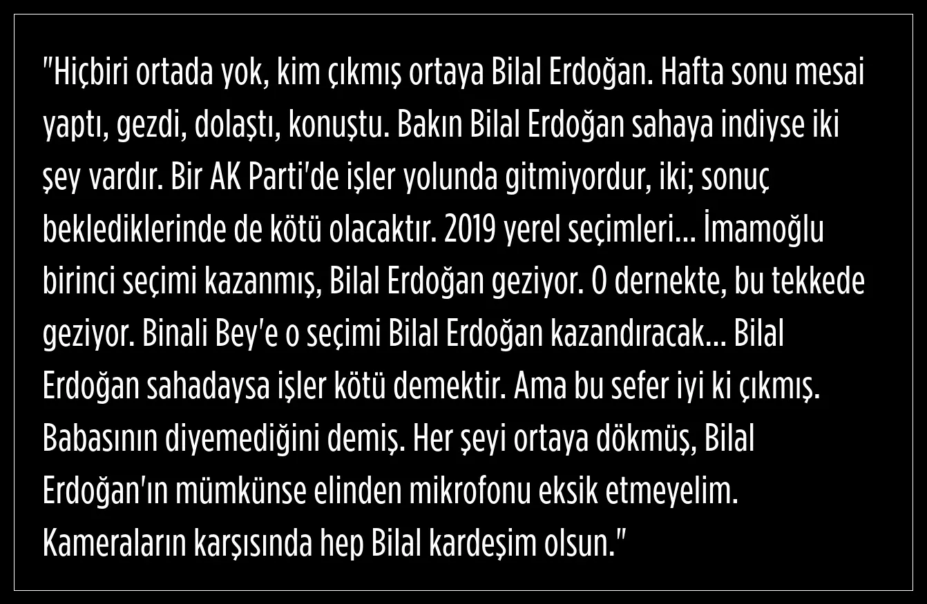 CHP lideri Özel, Bilal Erdoğan'ın çeşitli konulardaki görüşlerini bildirdiği videoyu yorumladı. Özel, ''Demek ki AK Parti'de işler kötü.'' dedi.