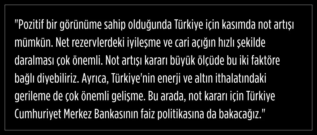 Türkiye, S&P Global Ratings'in kasım ayı değerlendirmesinde yeni bir not artışı alabilir. Gözler şimdiden kasım ayına çevrilmiş durumda.
