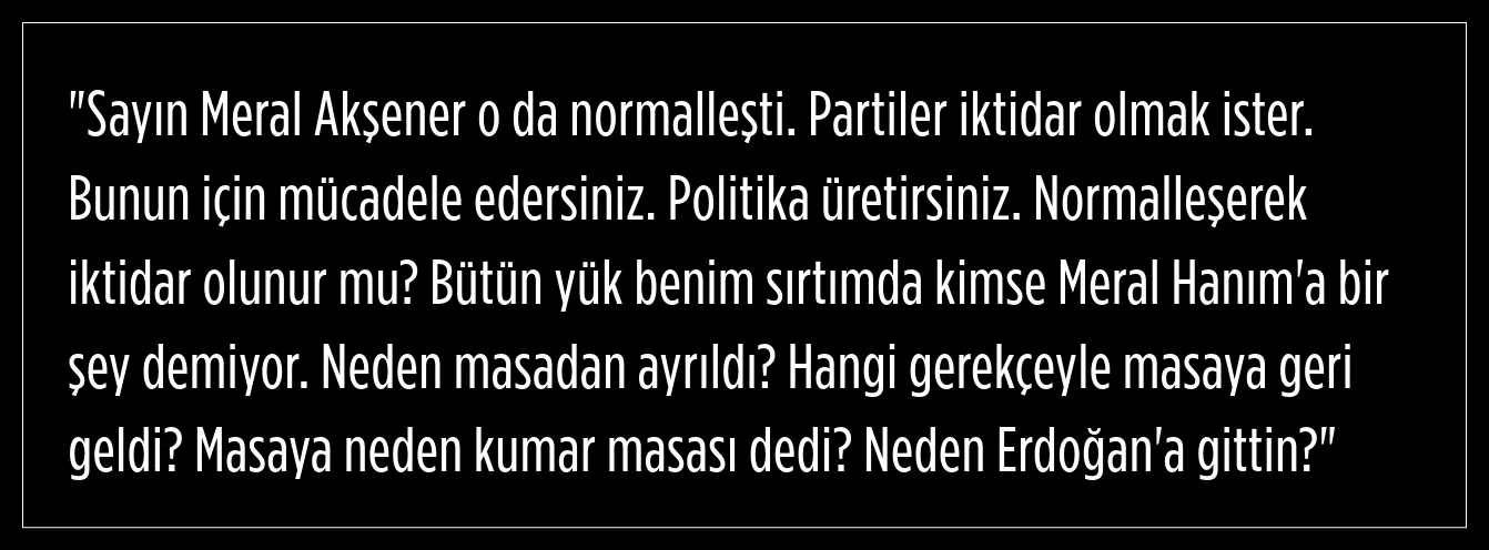 Kılıçdaroğlu, bir zamanlar aynı ittifakın çatısı altında birleştiği Meral Akşener ile ilgili şu ifadeleri kullandı:
