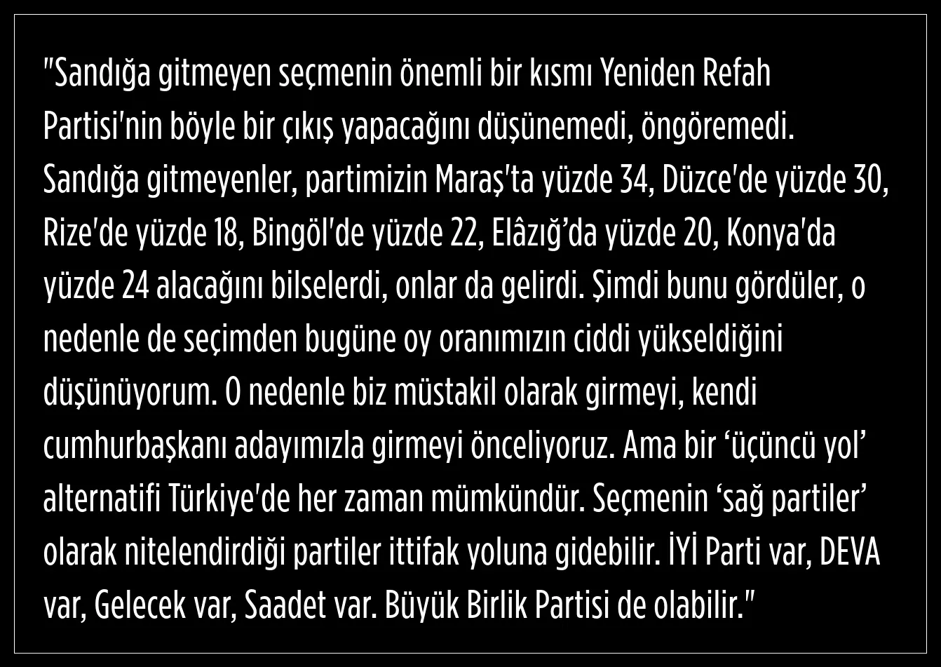 Siyasette "üçüncü yolun" her zaman mümkün olduğunu dile getiren Fatih Erbakan, şunları söyledi:
