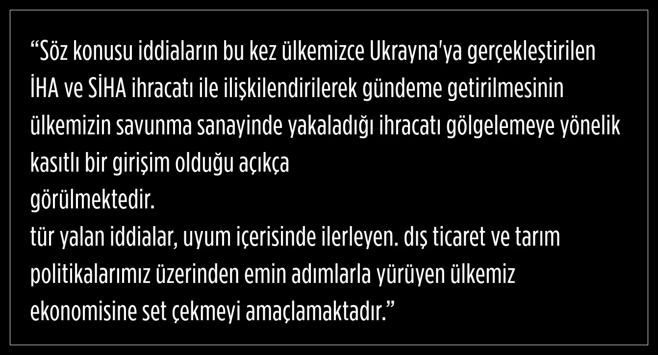 Ticaret Bakanlığı, bu iddiaları “Türkiye'nin savunma sanayiinde yakaladığı ihracat başarısını gölgelemeye yönelik bir kasıtlı bir girişim” olarak niteledi.