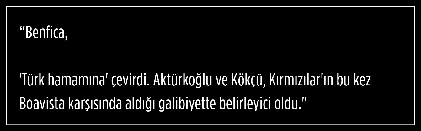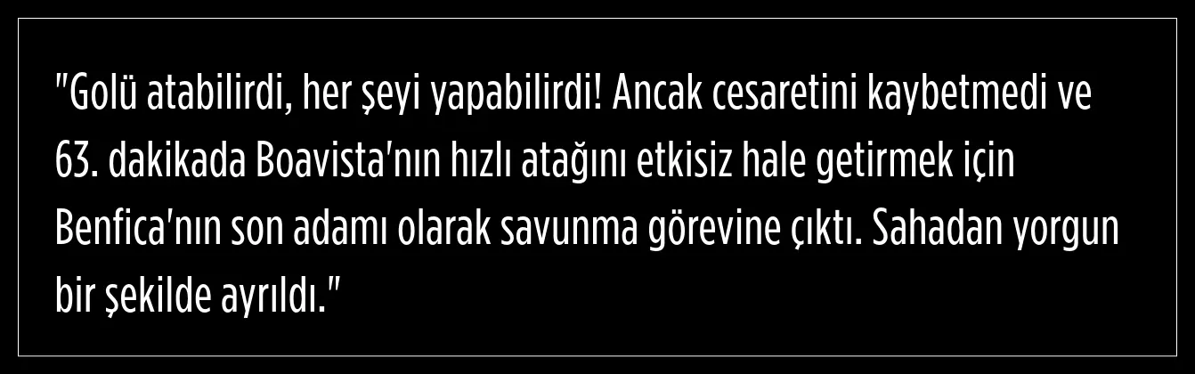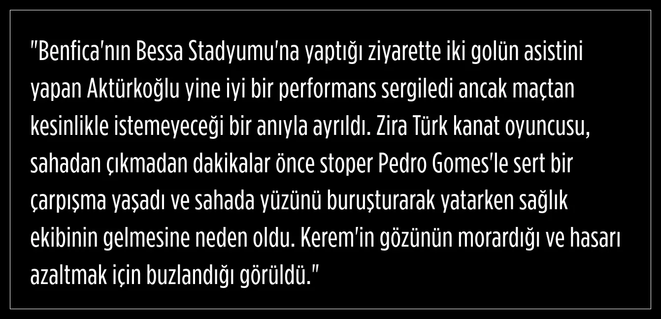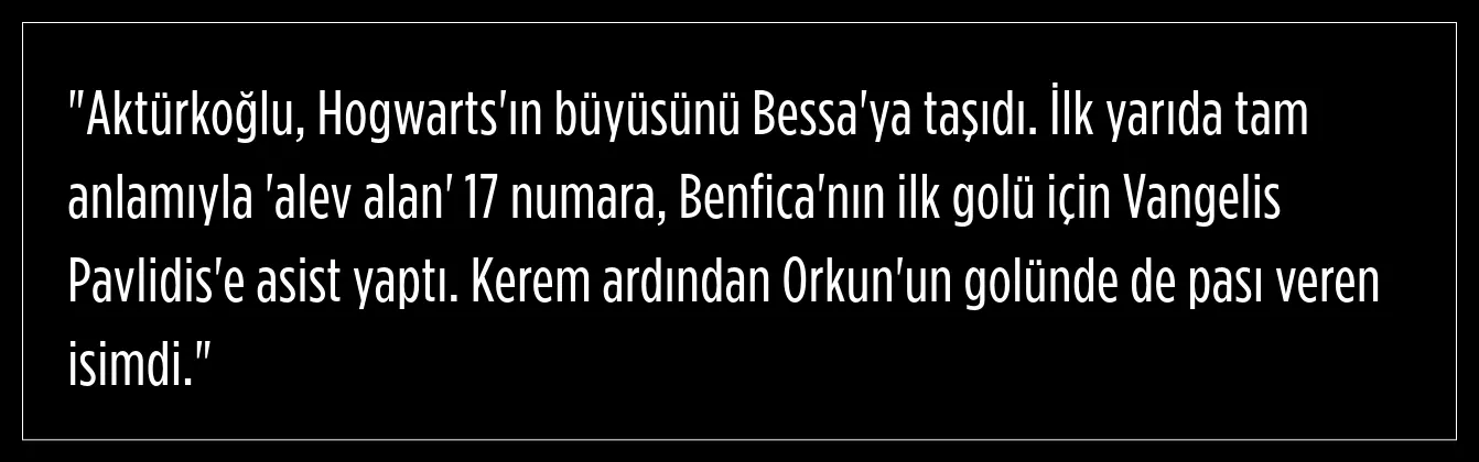 Kerem Aktürkoğlu, 2 asist yaparken bir de gol kaçırdı. Portekiz basını,Harry Potter benzetmesi yaptığı Kerem’e Benfica formasıyla çıktığı üçüncü resmî maçtan sonra da övgüler düzdü.