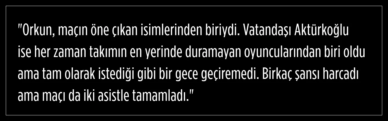 11. dakikada Pavilis’e muhteşem bir asist yapan ve golü hazırlayan Kerem, Orkun Kökçü’nün golünde de pası veren isimdi.