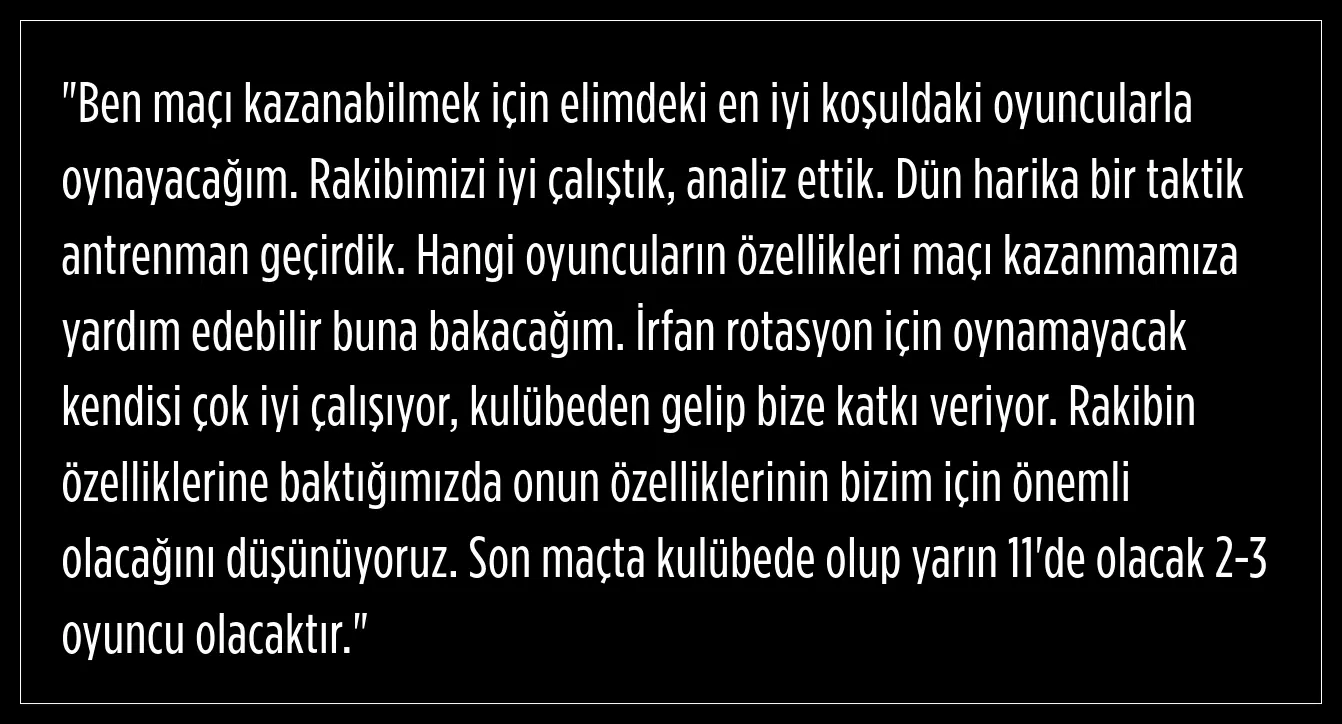Teknik direktör Jose Mourinho, Fenerbahçe Can Bartu Tesisleri'nde dün yaptığı basın toplantısında maça ilişkin şunları söyledi: